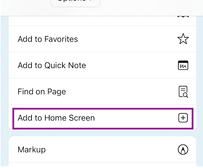 Kemudian scroll ke bawah pilih 'Add to Home Screen'
